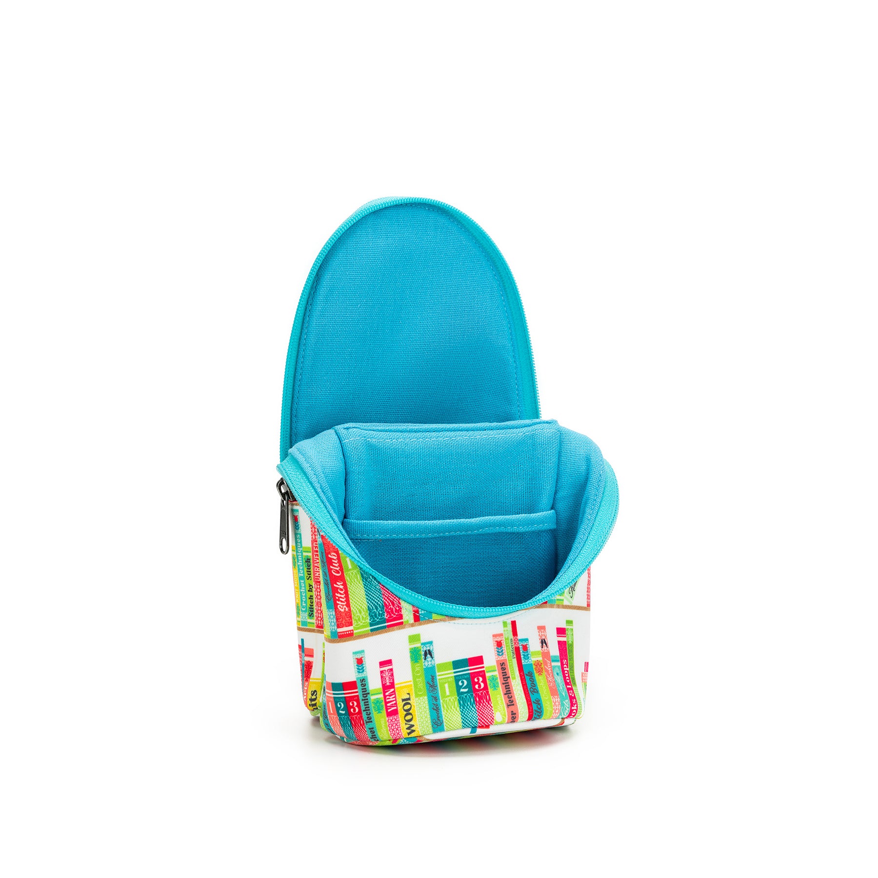 The Standing Needle Case zips open and unfolds to stand up perfectly by itself on any flat surface, magnets on the back of the flaps secure it open. It has a mesh see-through notion pocket. The Standing Needle Case not only holds hooks and needles, but it can also hold scissors, notions, a phone, make-up, and desk supplies.