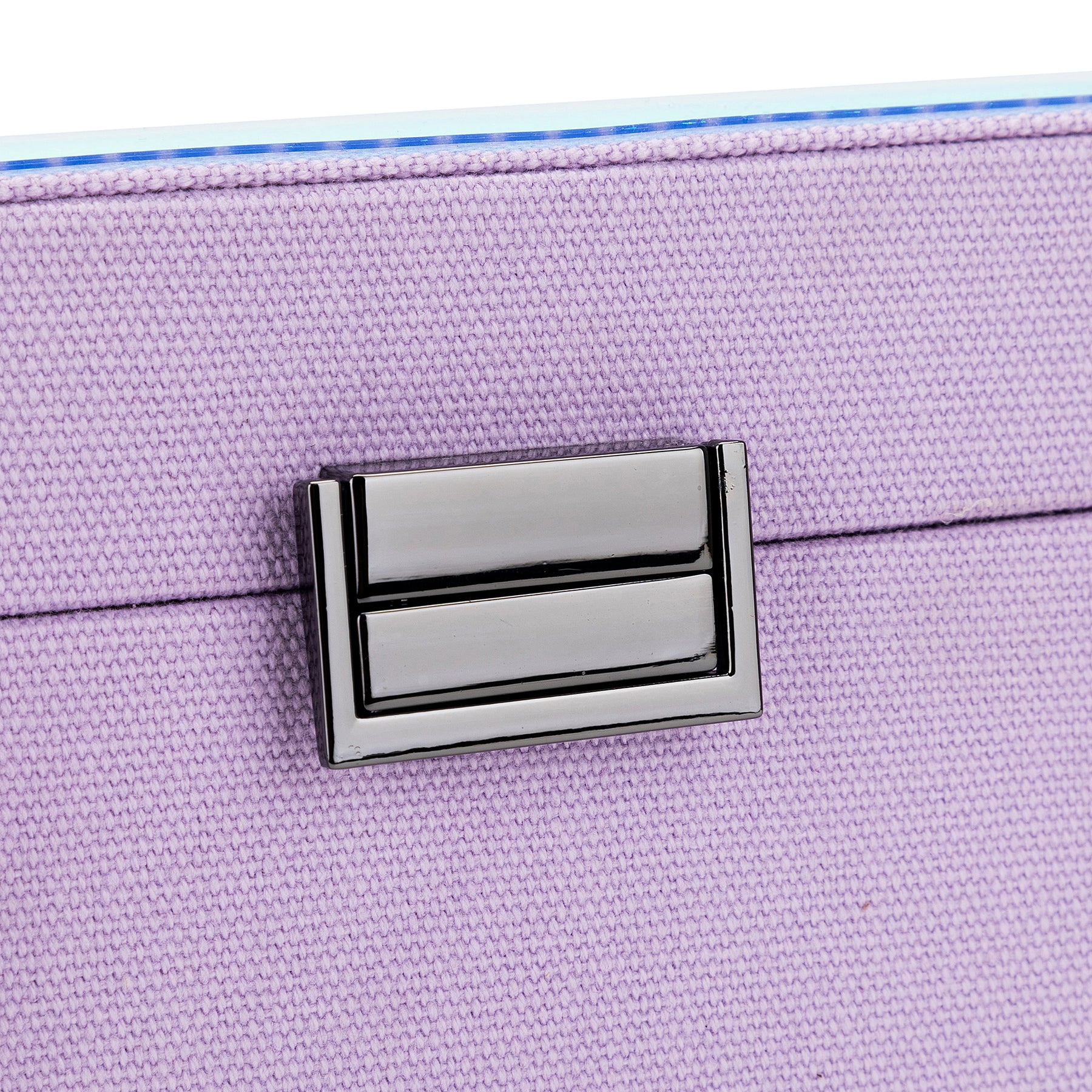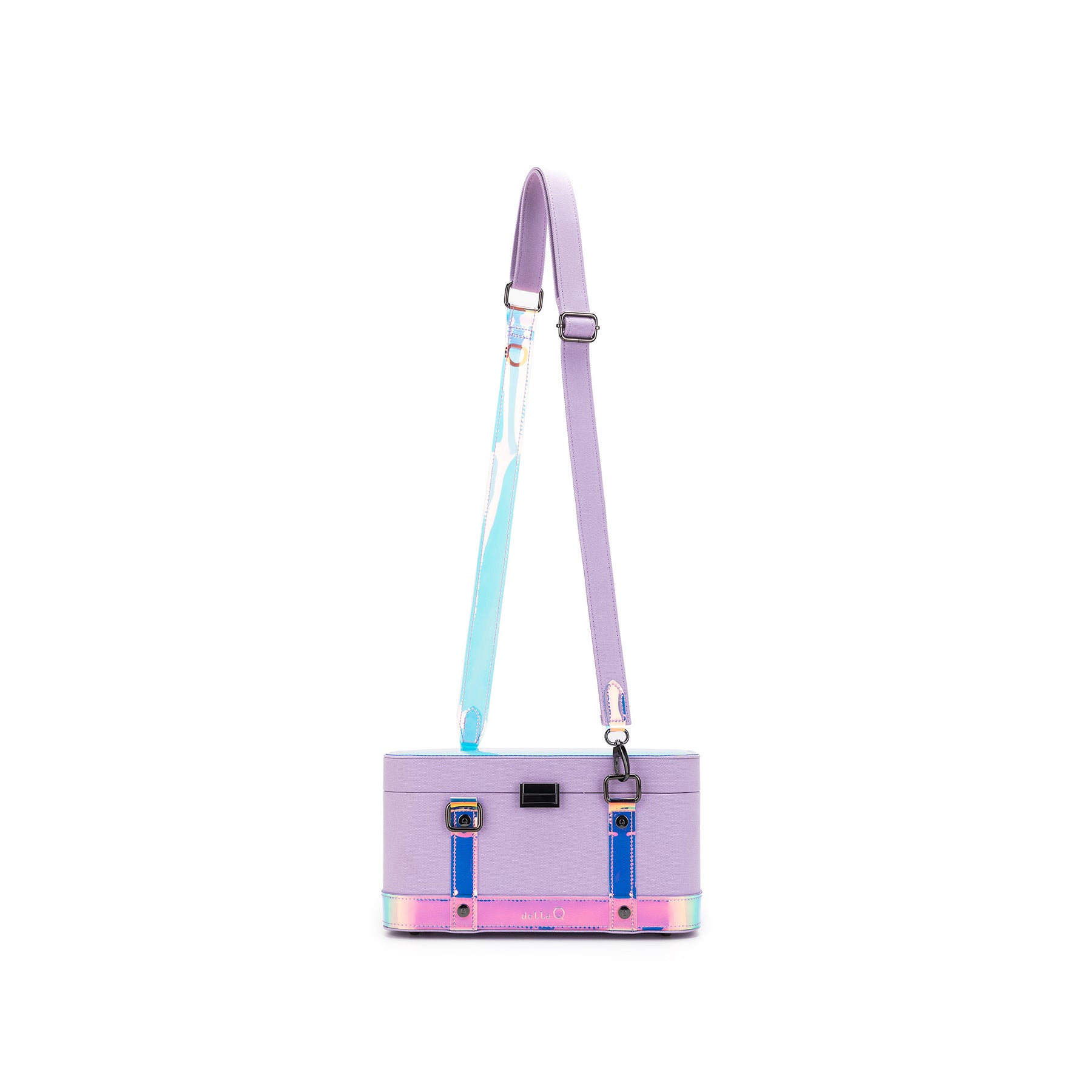 Made for our wanderlust makers, the reimagined Train Case from the della Q GLOW Collection adds a modern edge with gunmetal hardware, unwaxed canvas, and shimmering iridescent vinyl accents.