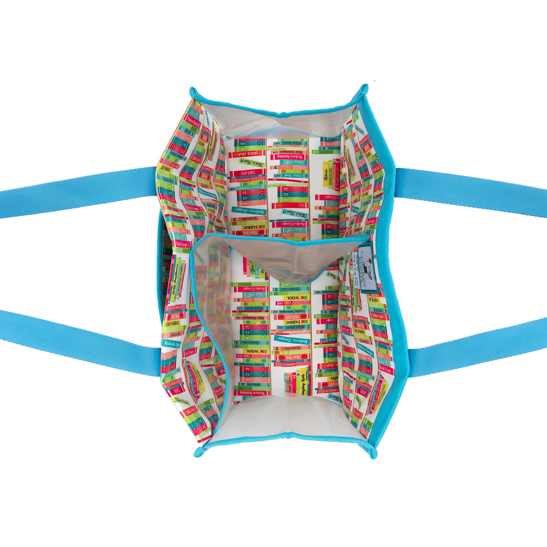 This project bag from the new Chicken Boots x della Q collaboration is perfect for all makers. It features sturdy yet flexible fabric so it stays open, upright and level while you’re crafting. The interior is divided into one large compartment and one small, along with a see-through pocket. There is also an outer end pocket and an outer document pocket perfect for patterns, paper, and magazines.